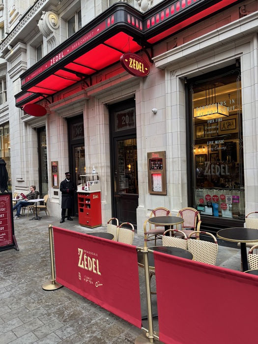 Our most recent description of the cuisine type served at Brasserie Zedel is French.