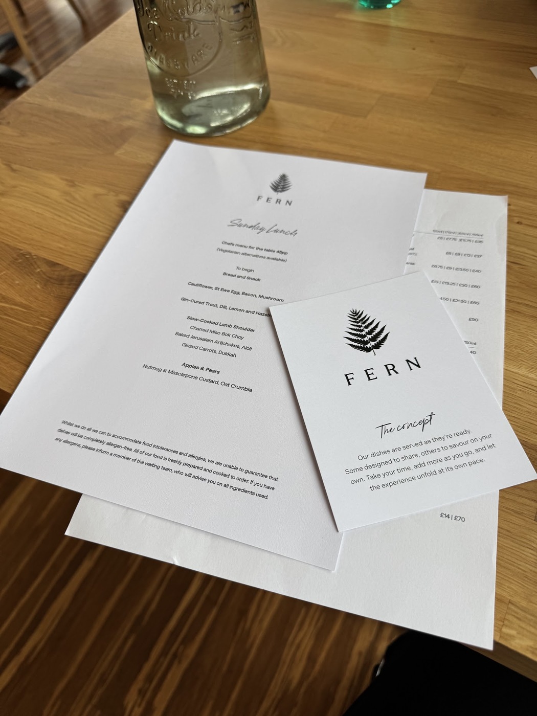 Our most recent description of the cuisine type served at Fern is Modern British.
