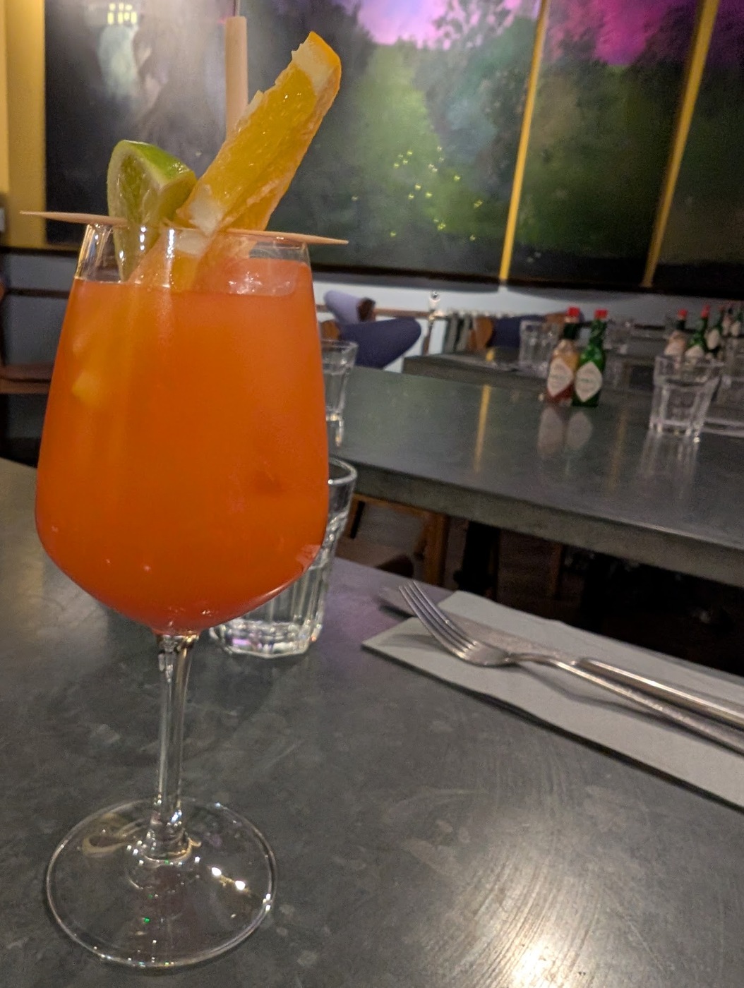 The food and drink were a bit of a mixed feelings. We got the Bloody Mary which was really good. The beignets, savoury and sweet ones, were both amazing. Some of us came here for the seafood boil but the crayfish was overcooked. The sausage and shrimp were good though. We felt it was just salty rather than having other flavour profiles. The shrimp in the grits was a bit over and overall just too salty for us. I thought the oysters were nice but they were expensive, £24 for 4. My friends ordered them for the table while I was away, I wouldn’t have ordered if I saw the price. My friends had the fries, waffles and po boy which were good.