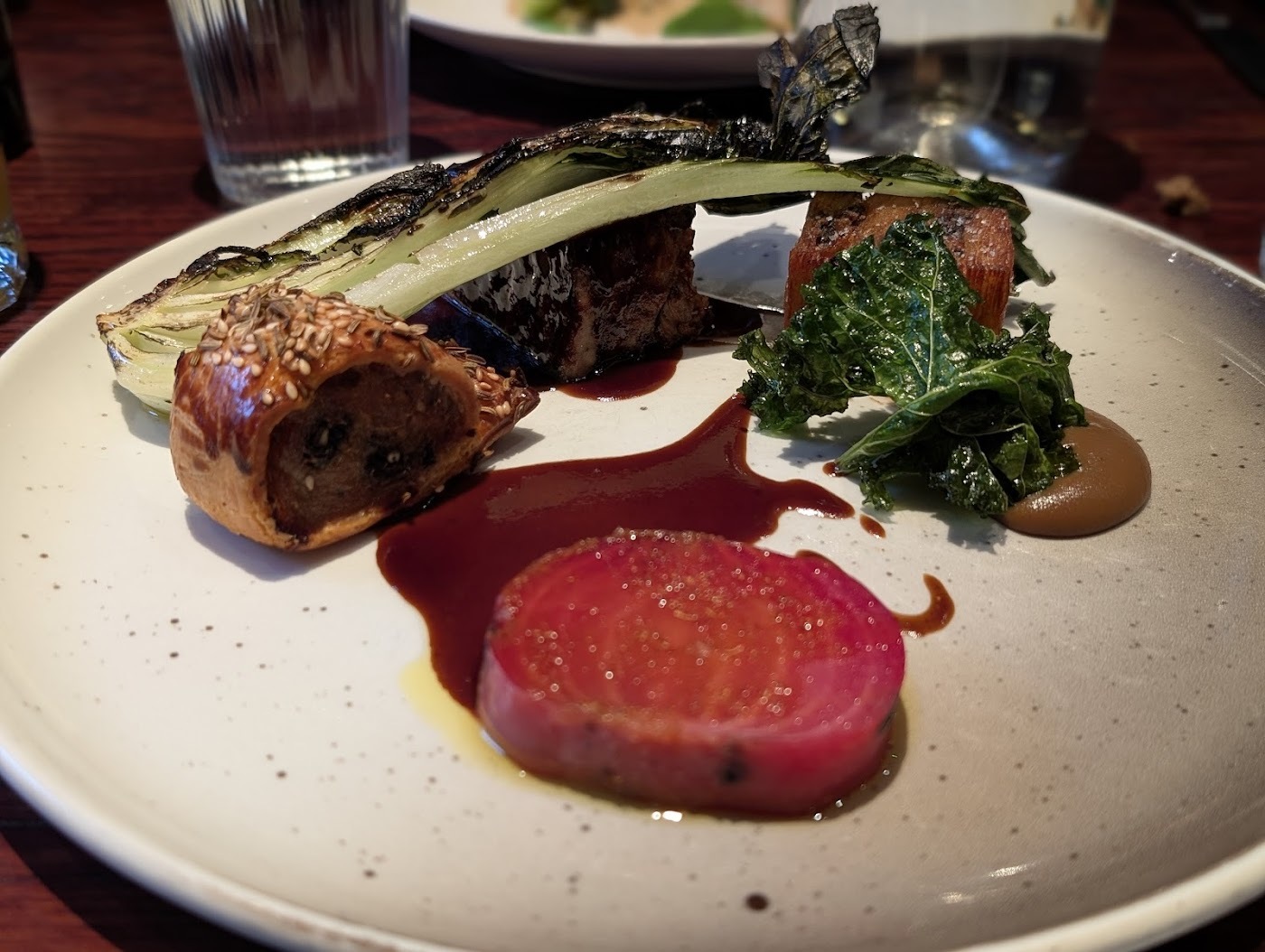We shared all the dishes and started with the Cheddar Arancini Snack & Duck Tart. For mains we had the Glazed Ox Cheek, Pork Presse and a side of Grilled Autum Cabbage. Then finished with the Chocolate Fondant & Date Pudding. Couldn’t fault a single dish, and all the portion sizes were really good, we were stuffed! We highly recommend the Cabbage.
